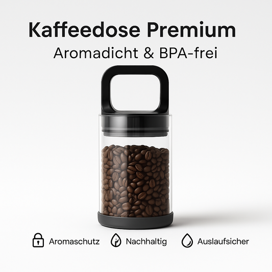 „Edle Kaffeedose & Vakuumdose aus Borosilikatglas – luftdicht, vakuumierbar & BPA-frei. Bewahrt Aroma, Geschmack & Frische von Kaffee, Tee & Lebensmitteln.“